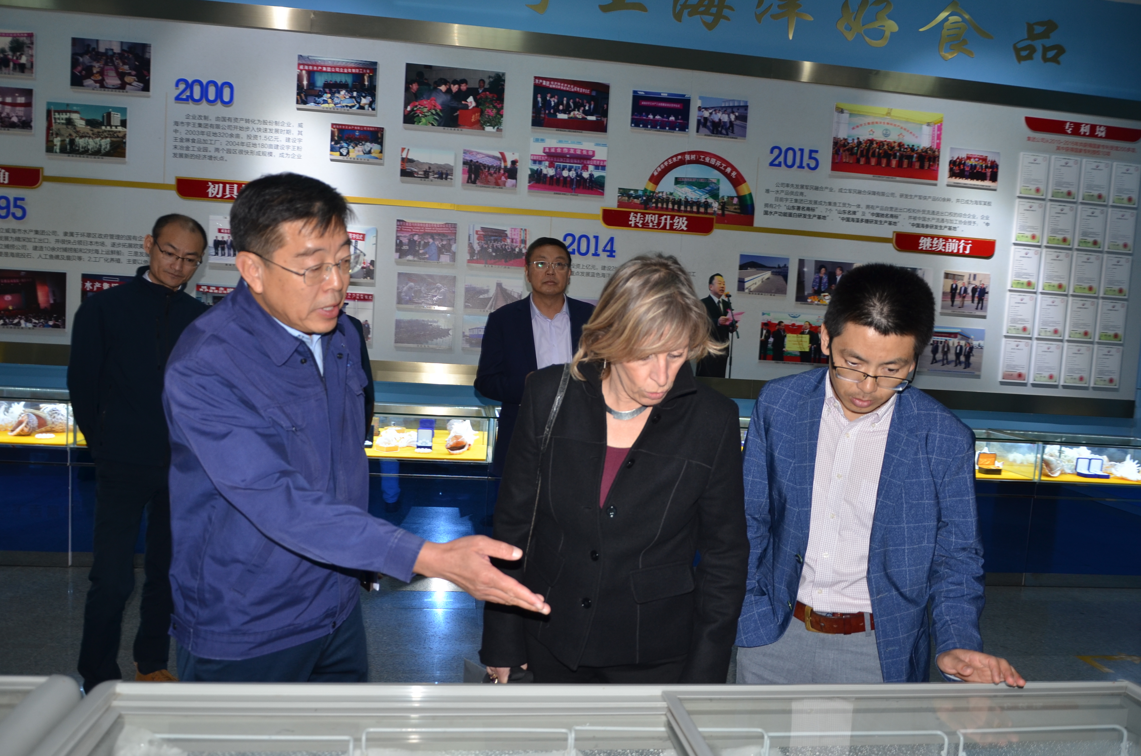 宋總裁一行首先來到海洋生物車間,觀摩了高新海洋生物制品生產流程,隨后參觀海洋生物館產品展示大廳,了解宇王集團發展歷程、規模實力、產品種類、產業成果等。最后雙方在科創大樓五樓會議室觀看水產加工車間現場實時監控,并舉行洽談會議。